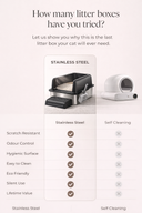 Because plastic absorbs odour over time, while the Paw & Nest™ stainless steel litter box does not. Its non-porous design keeps hygiene consistent, rewards regular cleaning, and prevents smells from returning — making it a long-term solution instead of another temporary fix.